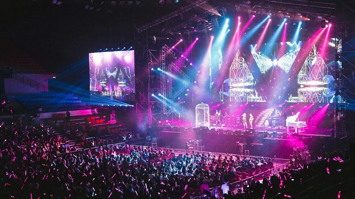 (Photo showing a large crowd enjoying a live music concert under colorful stage lights.)